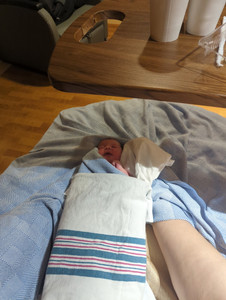 She was crying right away. The cord was wrapped around her leg. With my first, the umbilical cord was actually wrapped around his neck which is so scary but it could have been so much worse. I can't remember if they put her on my chest after she came out or not (I'm sure they did though.)